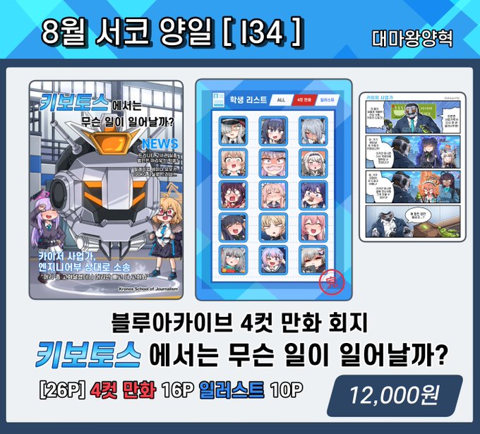 8월 서코 양일 [I34] 블루아카이브 4컷 만화 회지 부스 인포입니다! 많이 와주세요!