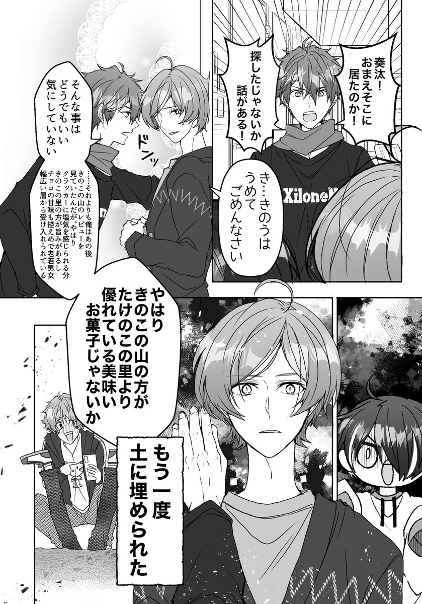 5 45 【5/3新刊サンプル②】 💙きのこたけのこ戦争 悩んでいる深海は、守沢と“とある事”で喧嘩をした模様。その内容は可愛らしくも根深いモノであった……。 23/04/17 19:06
