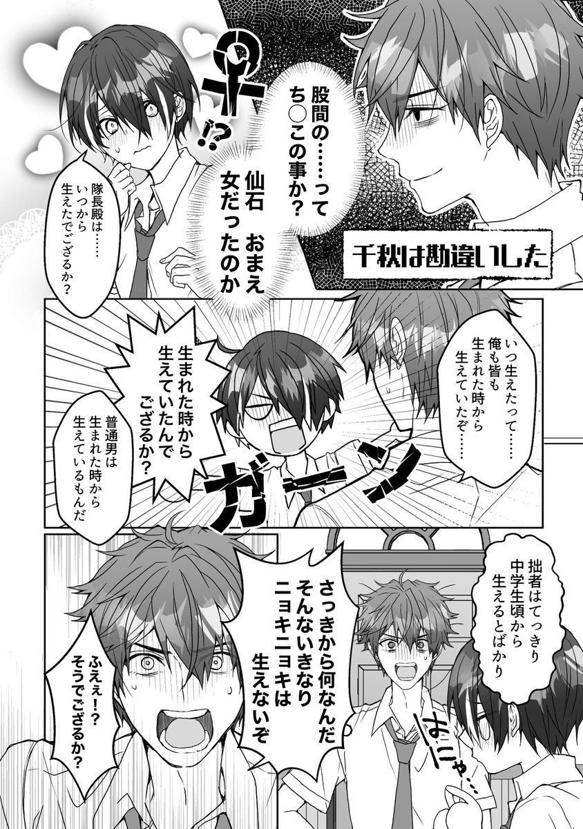 8 42 【5/3新刊サンプル①】 ❤️仙石忍のお悩み相談 とある悩みを抱えた仙石は、恥を忍んで守沢へ相談をするのだが……!果たして守沢の出した答えは? 23/04/11 18:35