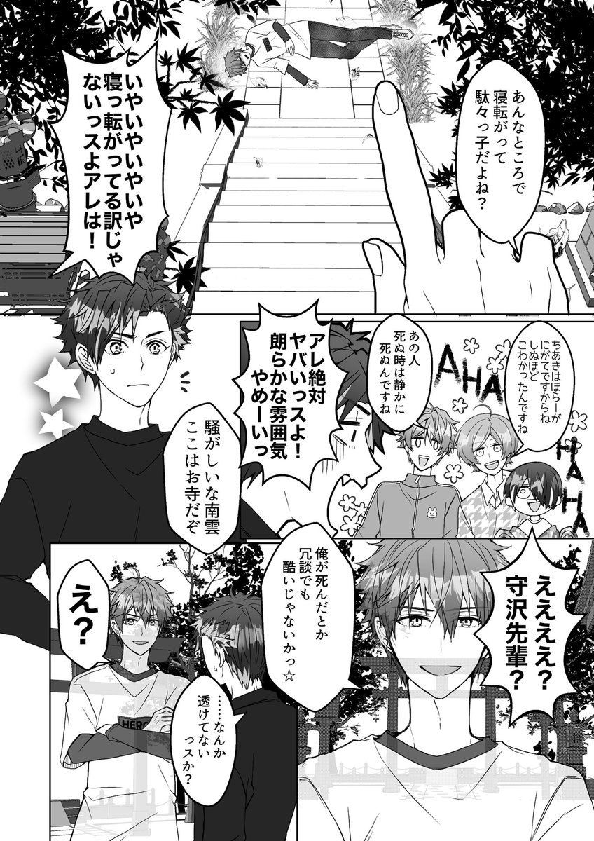 4 25 【5/3新刊サンプル③】 💛お寺の怪異 謎の影が出没するという噂で蓮巳の寺に訪問した流星隊の5人。しかし、そこに姿を見せない守沢。実はとんでもない事になっていた。 23/04/22 19:11