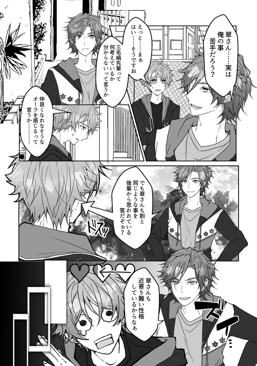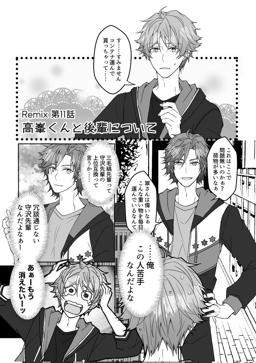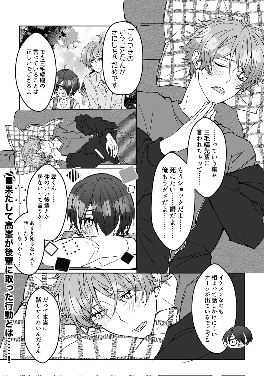 1 13 【5/3新刊サンプル⑤】 💚高峯くんと後輩について 三毛縞との会話で「後輩から怖がられている」という事実を知った高峯は、仙石から後輩へ話し掛けるように促される。果たして高峯は後輩と上手くコミュニケーションを取れるのか? 23/04/28 19:57