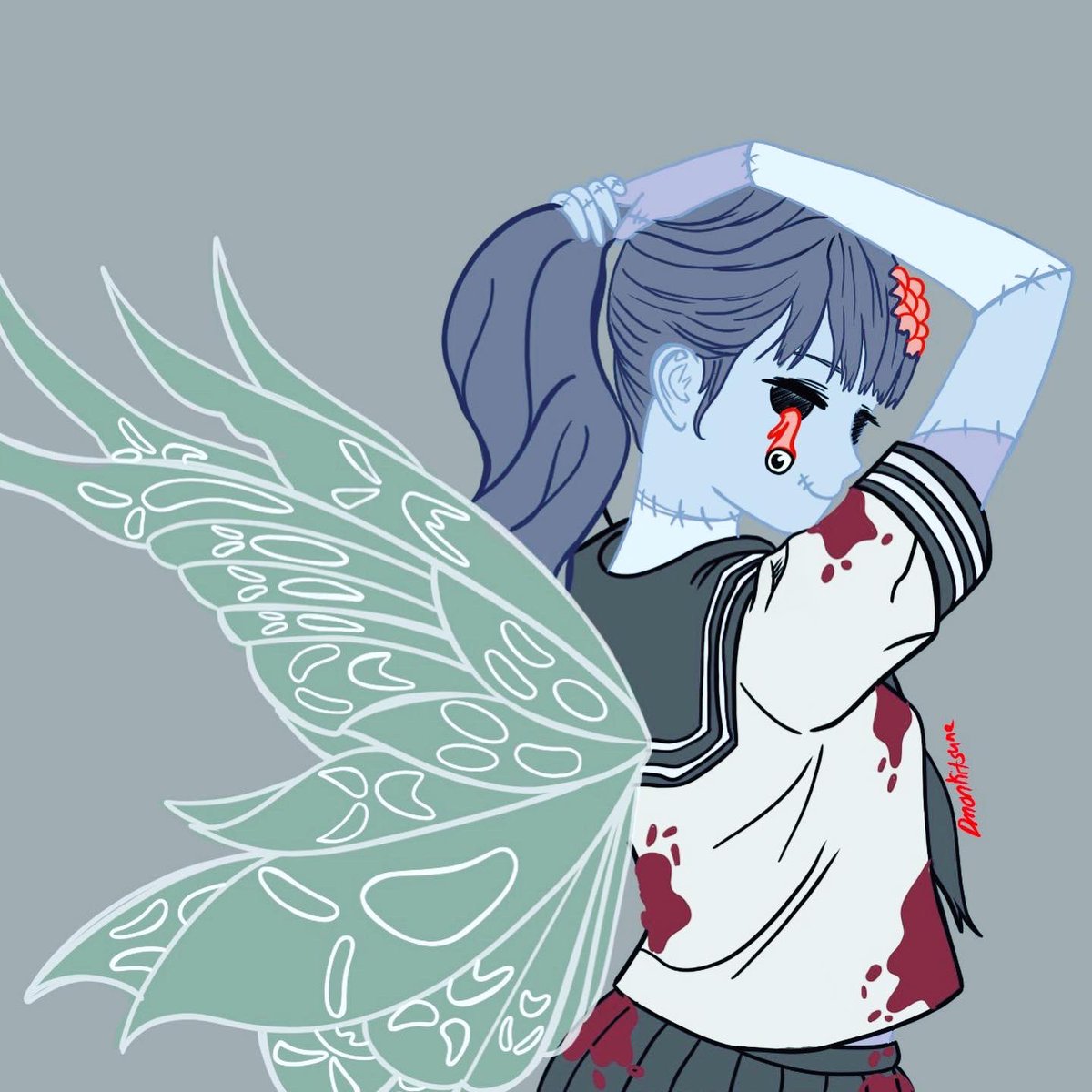 Day 14: Empty (Alice angel may be alive, but her heart will always be empty)🖤 #inktober2022 #inktoberday14