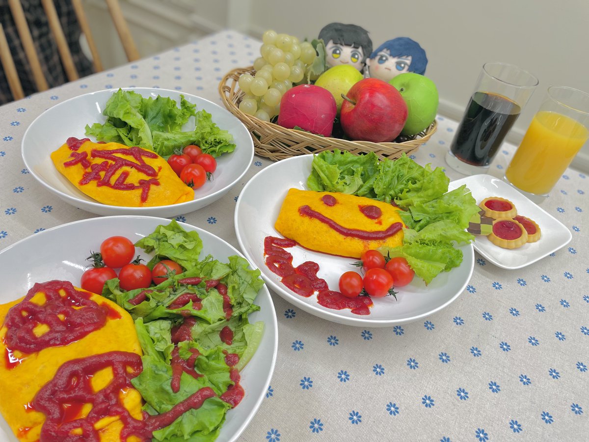 御影コーポレーション主催の併せに参加してきたよ〜🐝 みんなでオムライスとケーキ作った‼️今年もブルーロックで沢山遊びたいです⚽️よろしくお願いします💚💛🧡❤️🤍💜 #カフェロック併せ20230108 #cos_egoist
