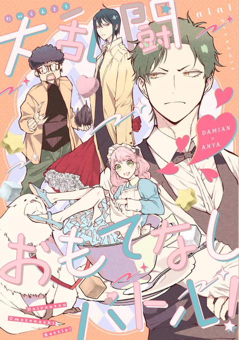 8月インテ新刊のダミアニャ本 「大乱闘おもてなしバトル!」の表紙です 元気で可愛いデザインはアイマイ様(@i_mai_design )にしていただきました ありがとうございます twitter.com/dnyakw/status/…