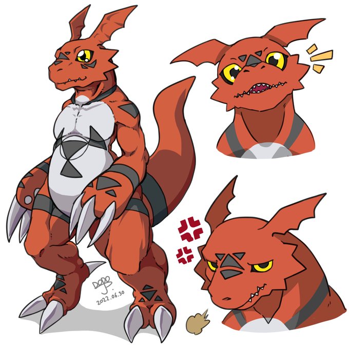 26 114 ギルモンの全身画バージョンと手癖の表情落書きも供養アップします。 22/06/30 20:00