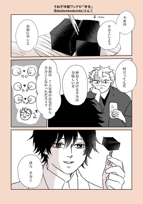 #さねぎゆ版ワンドロワンライ 💐第50回💐決して短くない期間運営していただきありがとうございます。これからもどうぞよろしくお願いいたします。 お題「半分」 半分この楽しさをしってる末っ子とこれからたくさん半分こしてください。