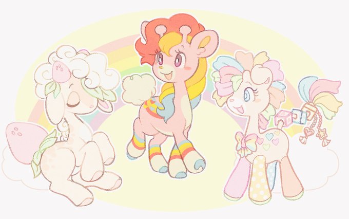 a colourful assortment of giraffes 🌈🍰🎀