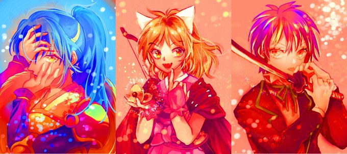夜叉姫三人衆 #絵を彩度100にすると超派手