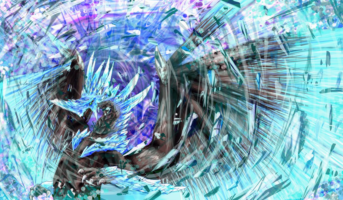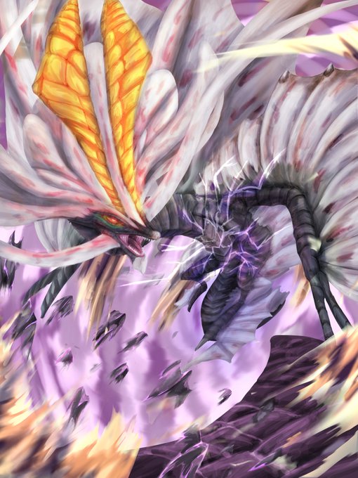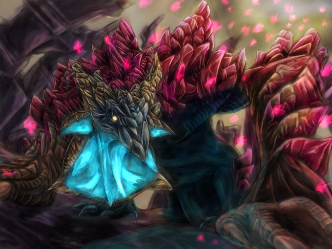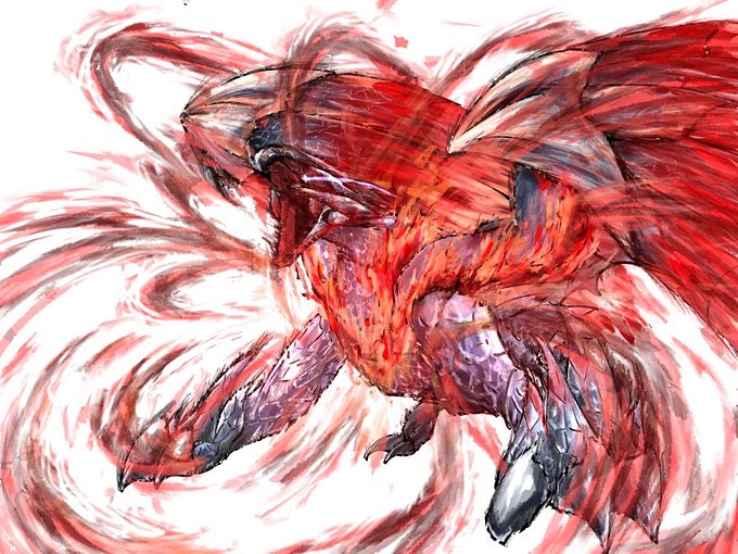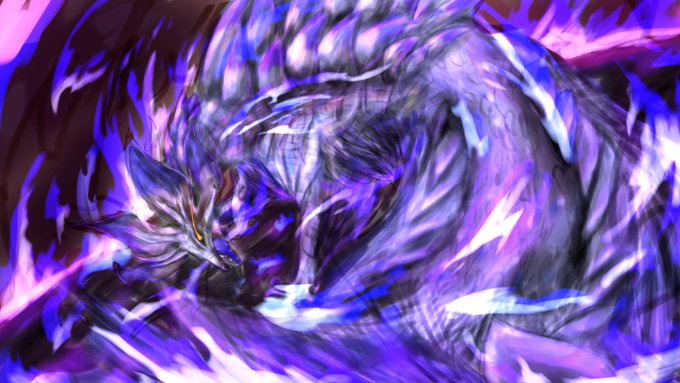 渾沌に呻くゴア・マガラ描きました! 次のアプデでは来ないけど……その次は……厳しいか泣 リプくれたら二言以上返信します!語り合いましょ #豆イラスト #サンブレイク #絵描きさんと繋がりたい