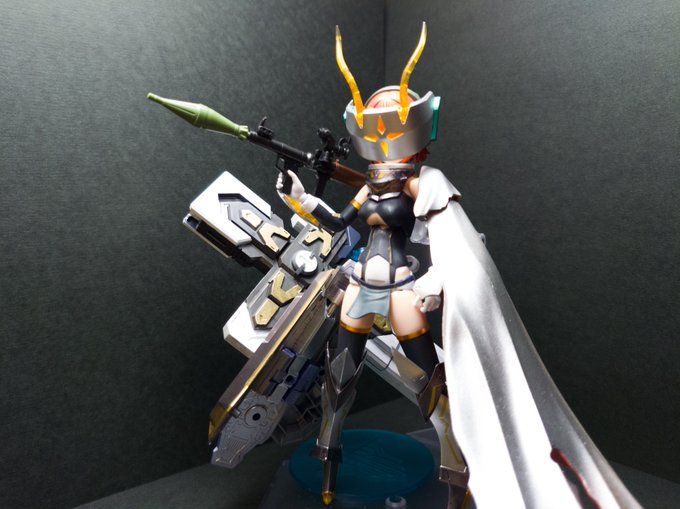 おは模活~ エクスキューショナーちゃん、武装モードの完成まであと一歩! 我慢できずに撮影してしまいましたね😆 裁きの執行者感……は出てないかもしれませんが😅 このカラーリングはお気に入りです #メガミデバイス #エクスキューショナー