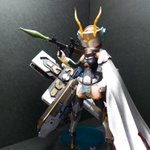 武器も武装も全て終了しました! エクスキューショナーちゃんこと、 「フィニー・シュリブロー」ちゃんです フィニーと呼んだって下さい 纏わり付いてるのは使い魔の「パラチ」です 今年1番力を入れて作り、結果も満足いってます😆 #メガミデバイス #エクスキューショナー