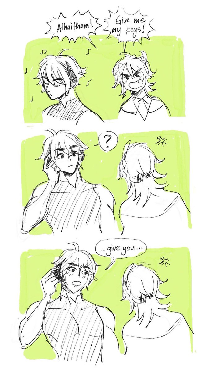 This is kinda cringy so anyway I’m killing myself tonight #Alhaitham #Kaveh #kavetham #GenshinImpact #genshinimpactfanart ps. He heard him just fine 😔