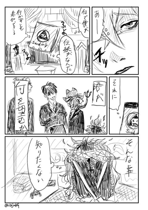 KG名義で描いてた落書き星イベ💀🌸 顔なし喋らない 一応 #twstプラス なのかな 君が~の所の燃えてる頭は🤖くん