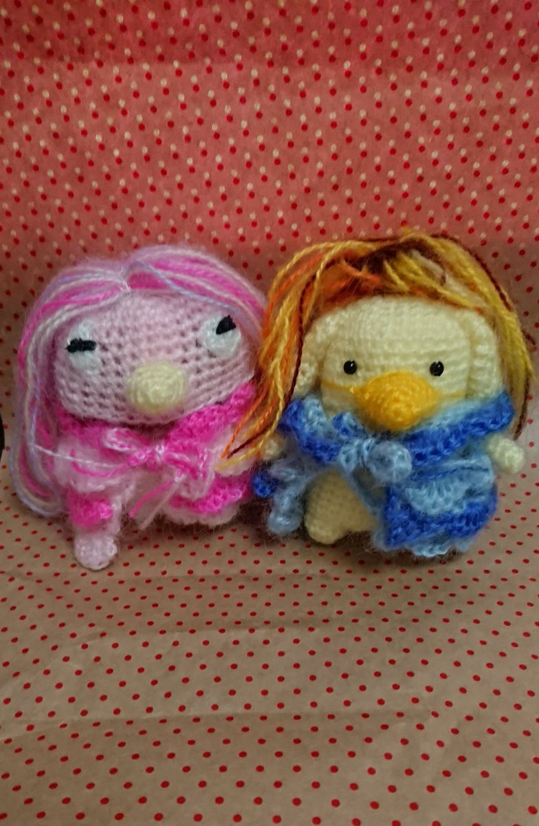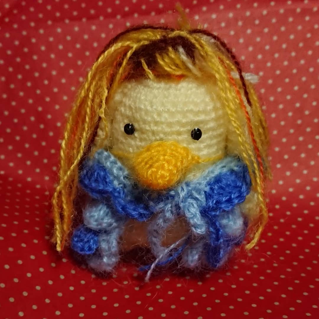 2 14 アマビエちゃんできたわ🎵なんか銀魂のエリザベス風よね(笑)髪の毛できるようになったわー、ヒトガタも作れるかしら? #あみぐるみ #アマビエ #ポムポムプリン #コスプレ 20/04/21 11:32