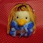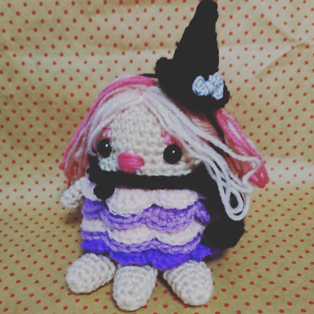 アマビエちゃんできたわ🎵なんか銀魂のエリザベス風よね(笑)髪の毛できるようになったわー、ヒトガタも作れるかしら? #あみぐるみ #アマビエ #ポムポムプリン #コスプレ