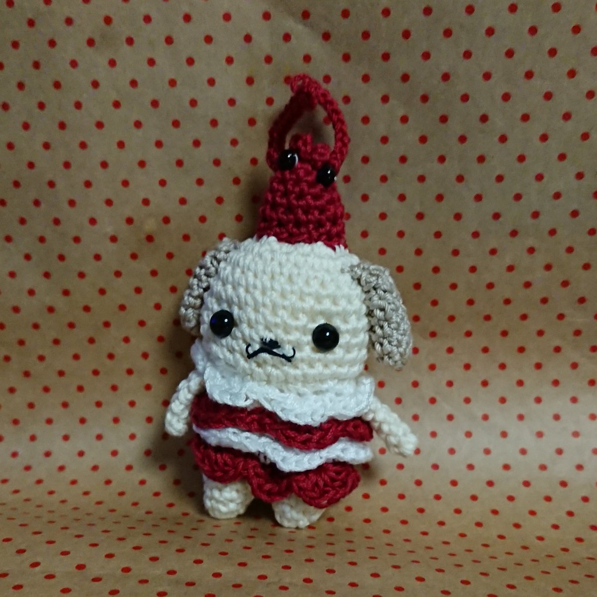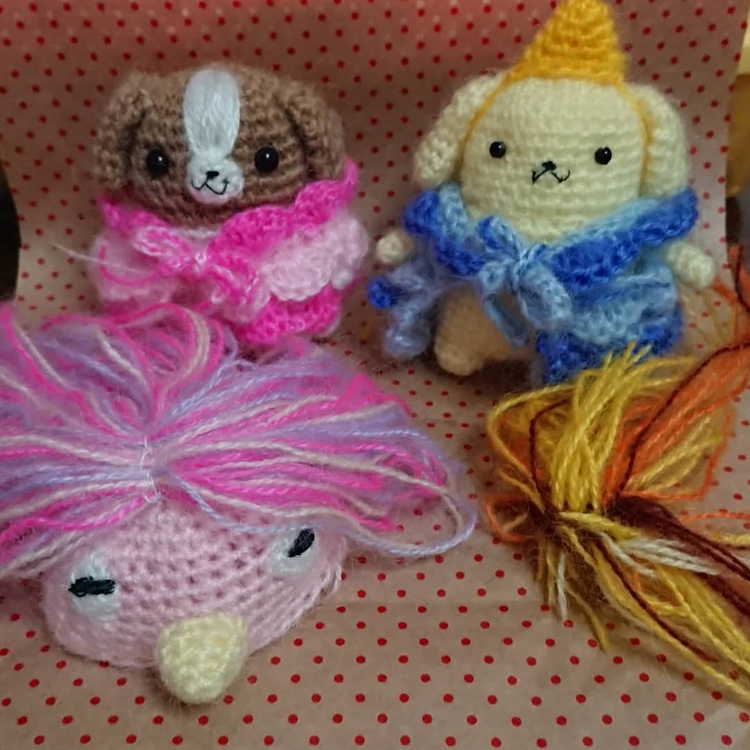 最近はアマビエさんばかり作ってたので、姫ちゃんの配色間違えたー(-_-;) #甘エビ #ワンコ #コスプレ #あみぐるみ #あみコレ準備中