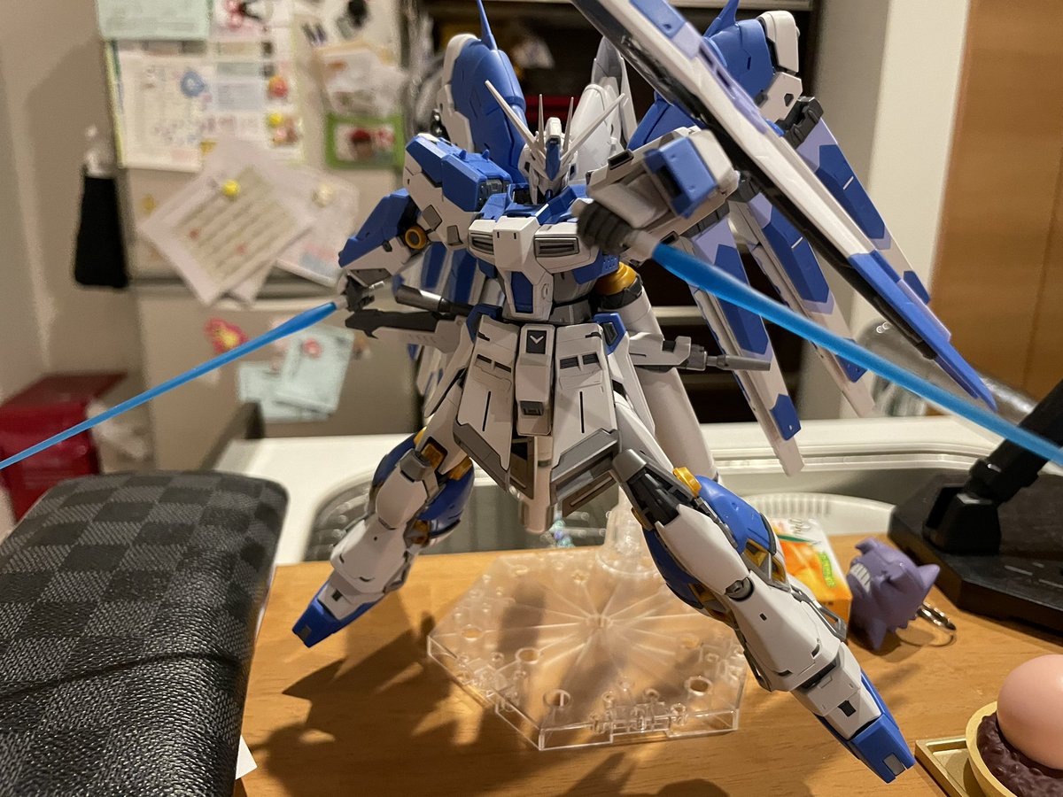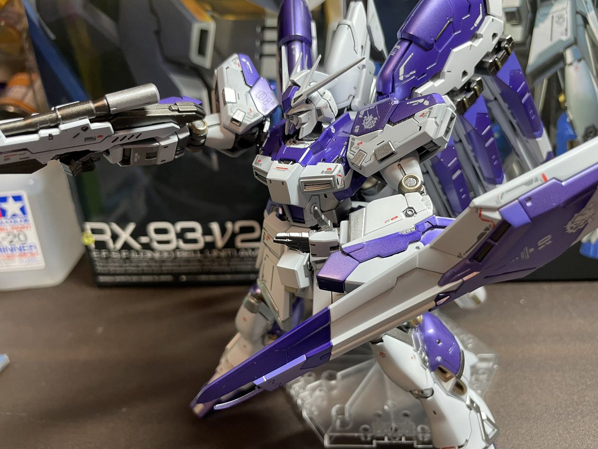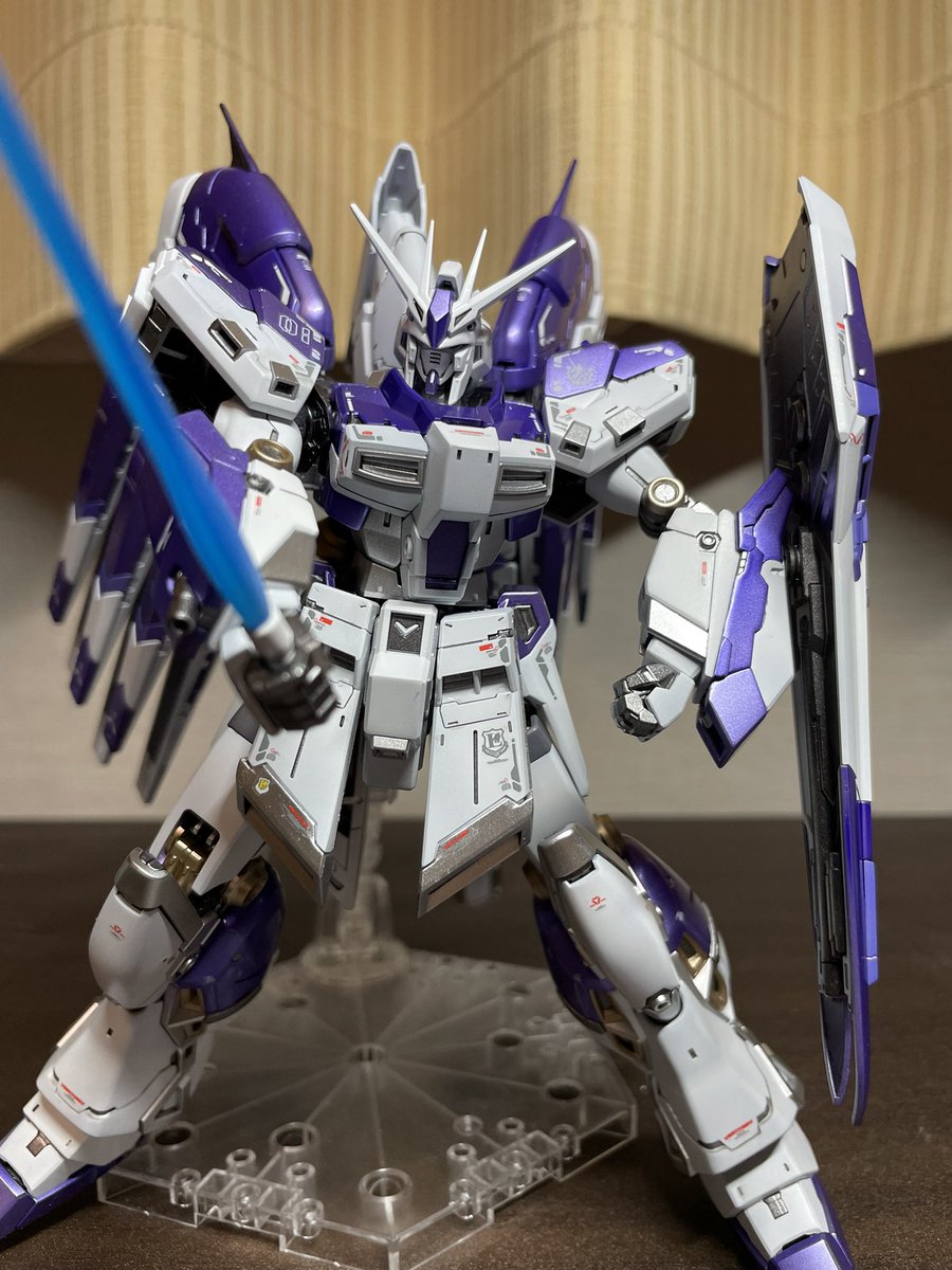 RGハイニューガンダム完成。キャンディ塗装と半光沢仕上げで製作してみました。ワタシのイメージではこの機体はこのカラーリング。相変わらず撮影技術が素人以下です… #ガンプラ #ガンプラ好きと繋がりたい #ガンプラの画像貼るとRTされると聞いて