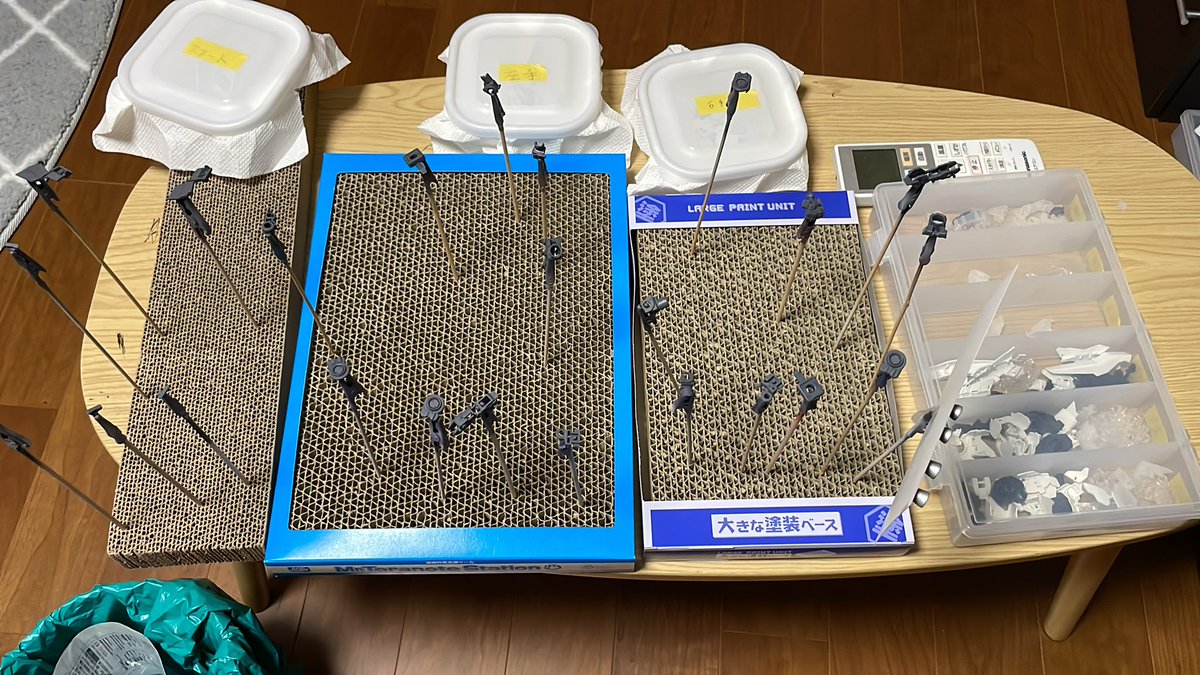びしょ濡れになり深夜の帰宅です。深夜に塗装は流石に色々とキツいので今日から本体の切り出し、表面処理を行います。#ガンプラ好きな人と繋がりたい #ガンプラ #ガンプラの画像貼るとRTされると聞いて