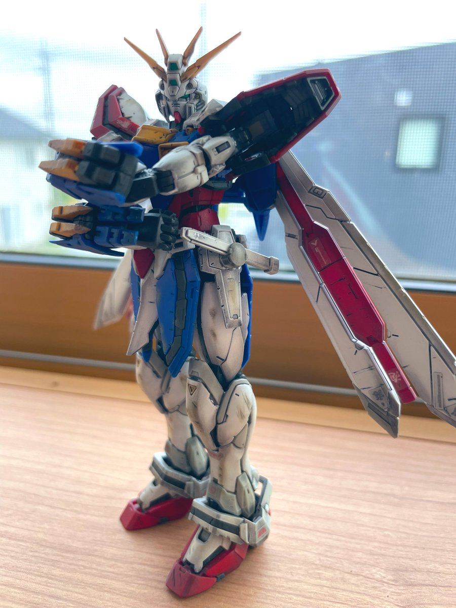 RGゴッドガンダム無塗装ウェザリング仕上げ完成しました。素組みと比較すると大分イメージ変わりますね。センス微妙ですが何枚かポーズ付けてみました。ゴッドガンダムらしくないポーズばっかりです😅 #ガンプラ #ガンプラの画像を貼るとRTされると聞いて #RGゴッドガンダム