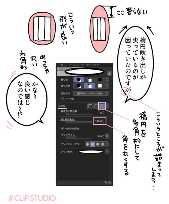 34 86 #CLIPSTUDIO 楕円吹き出しを使いやすい形(超丸六角形)にする 21/08/20 22:55