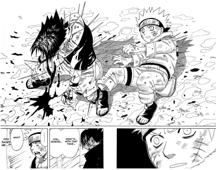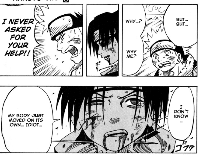 In the Land of the Waves arc, Naruto learns the concept that "your bonds make you stronger"/ "the most precious person" with Haku first then with Sasuke sacrificing himself to protect him. "my body moves on my own" moment. Sasuke taught him that.