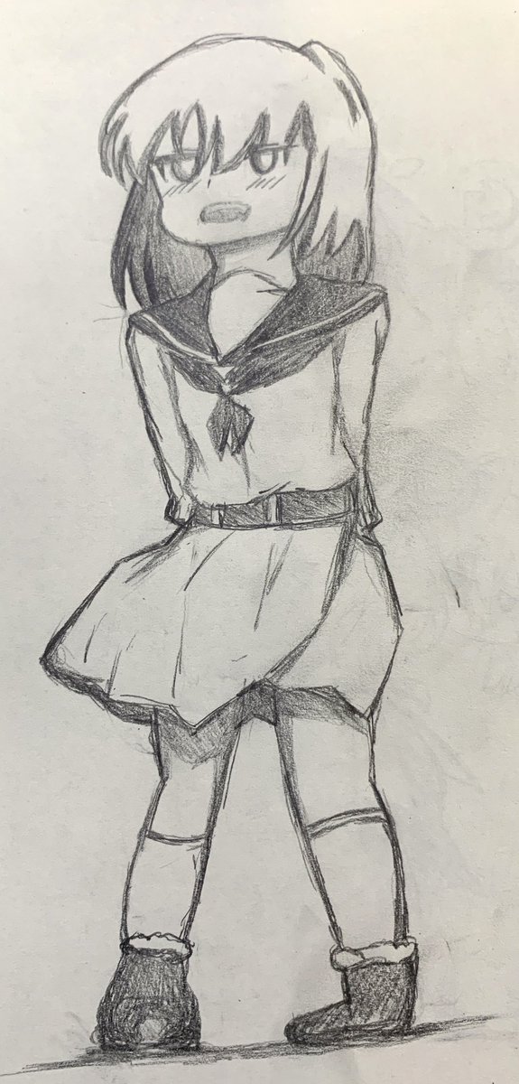 昔のイラストを描き直してみた(下描き) 左はスカートのみ 右はシャツ半分着てるバージョン 名前は完成してからつけます #イラスト好きな人と繋がりたい #イラスト こういう系のイラスト初めて描いたかもしれない