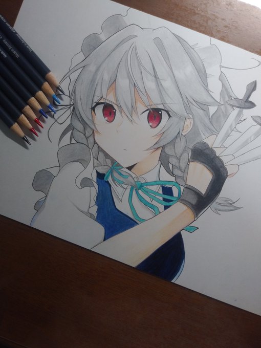 十六夜咲夜 ✨ #東方Project #十六夜咲夜 #色鉛筆イラスト