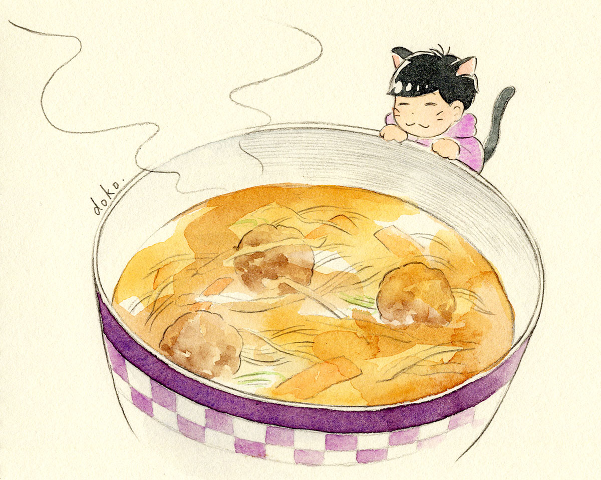 #飯テロ松版深夜の創作一本勝負 お題/あったかい汁物 ごま油香る肉団子スープ🐱🥄