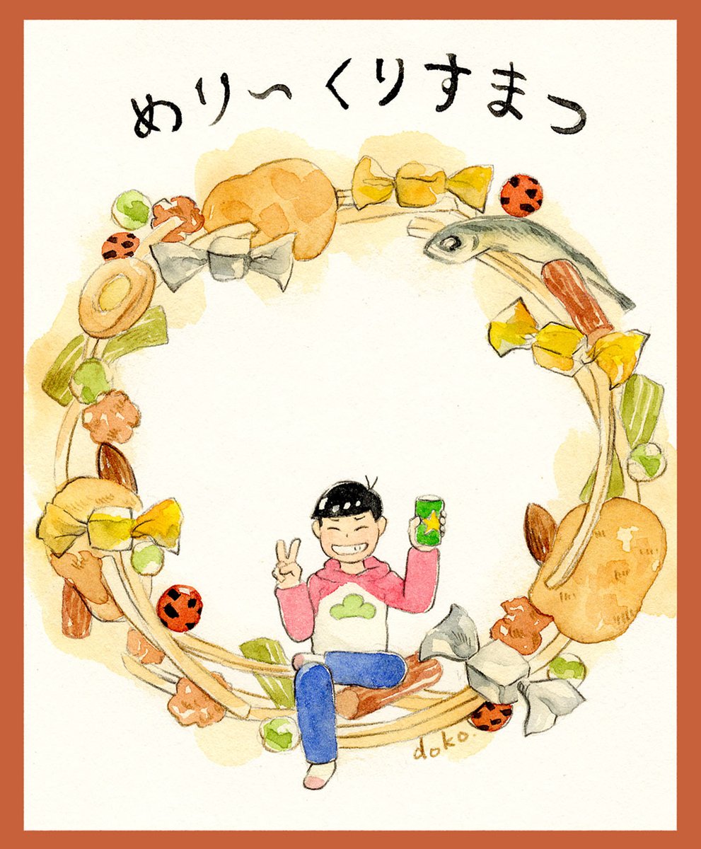 32 100 #飯テロ松版深夜の創作一本勝負 お題/あえてクリスマスっぽくないもの クリスマスっぽくないものであえてクリスマスっぽいリースを作ってみました。めり〜くりすまつ!🍺 21/12/25 22:27