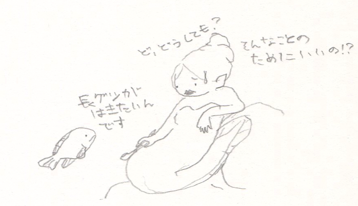 #イラスト 海の魔女に人間にしてもらいに行く魚