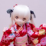 これは明日はひな祭りなので菱餅を持って晴れ着で記念撮影をしようと思ったけど、うちの子の腕の力が足りずに放り投げられる結果となった菱餅くんとなんでもなかったかのような笑顔のうちの子です。かわいいからヨシ! #MDDはいいぞ #うちのこかわいい #ドール #doll #floralgarden娘