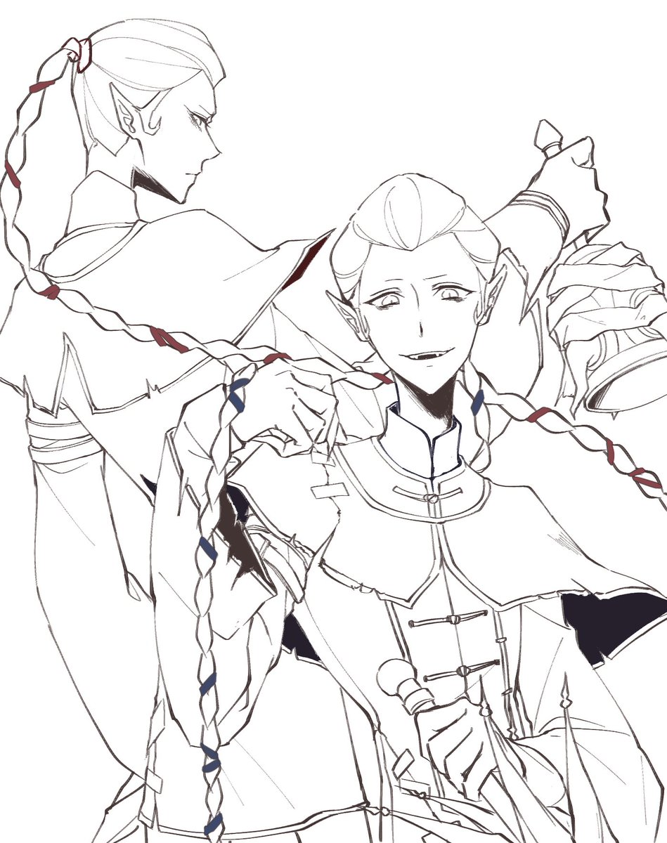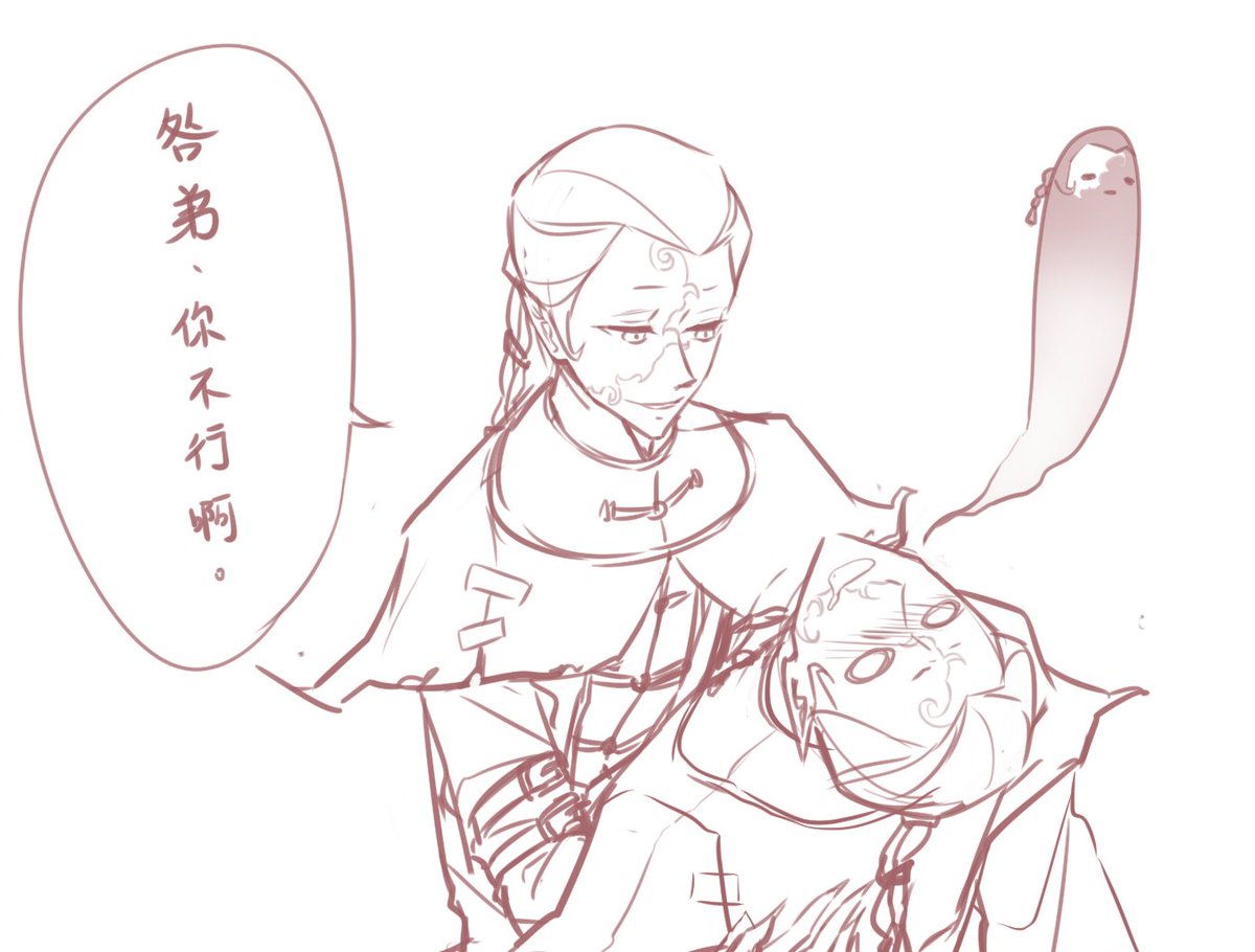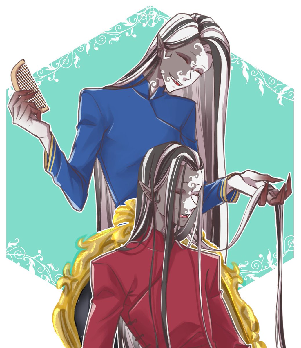 *台湾語ですみません* *無常さんに想像のインナー服着させています* ジョゼフに嫌がらせ(髪紐が隠された)を受けている無咎と髪を梳る無常~ 無咎がこんな風に髪を遊ばせ相手は必安だけだよ、絶対に...😇 #第五人格イラスト #IdentityVイラスト