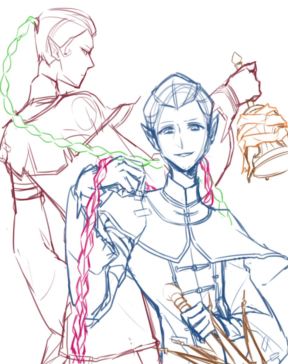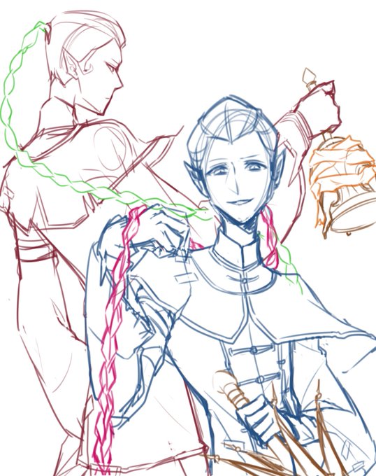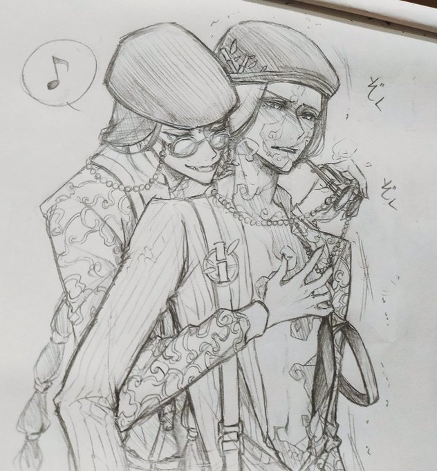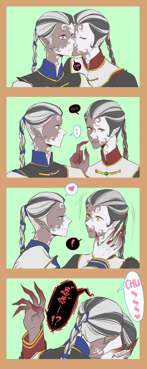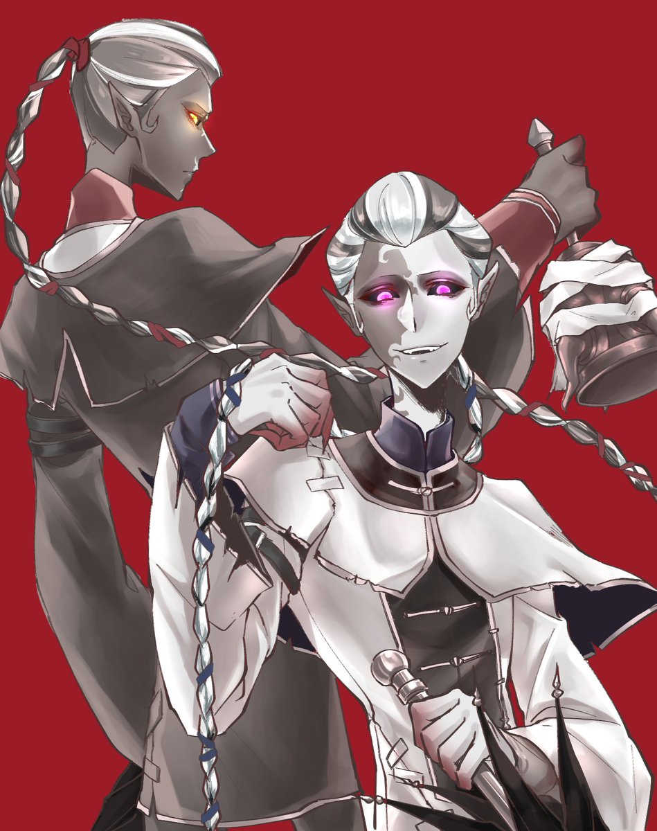 *台湾語ですみません* *無常さんに想像のインナー服着させています* ジョゼフに嫌がらせ(髪紐が隠された)を受けている無咎と髪を梳る無常~ 無咎がこんな風に髪を遊ばせ相手は必安だけだよ、絶対に...😇 #第五人格イラスト #IdentityVイラスト