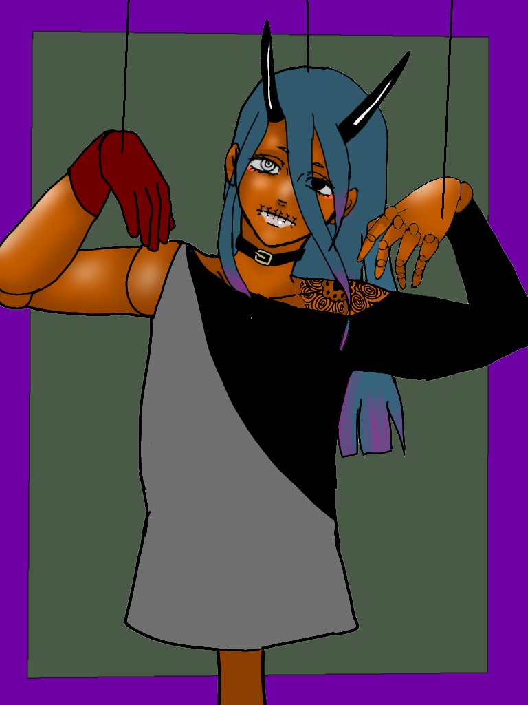 #イラスト #オリジナルイラスト 久しぶりの操り人形くんです。 人形なので細かな部分も変えることが出来る(適当設定) ただ腹話術の途中で勝手に喋り出すので口は縫い付けてます。