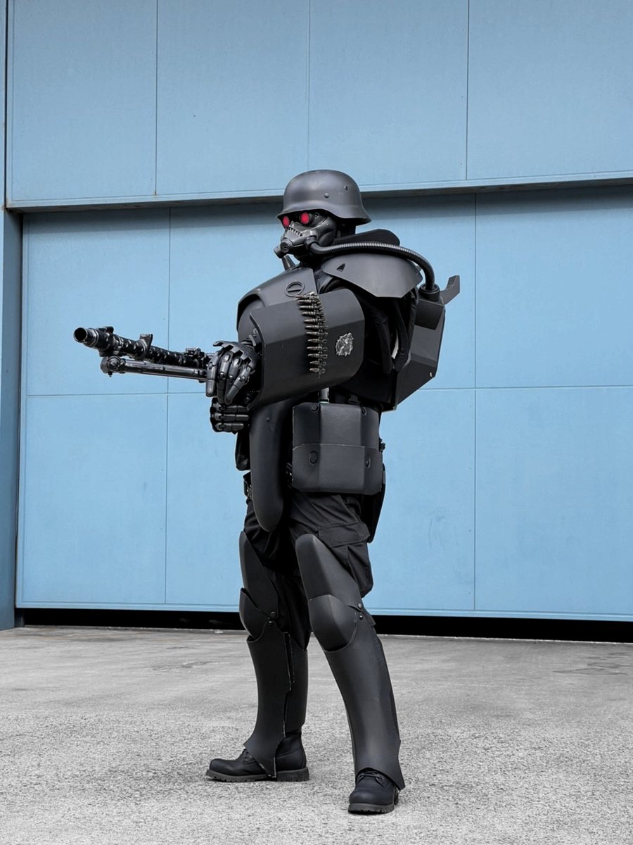 でもやっぱりプロテクトギアの射撃はこう背筋の伸びたポーズがしっくりくるよね。 #ケルベロス地獄の番犬 #ケルベロスサーガ #ワンフェス2022W #ワンフェス2022冬 #ワンフェスコスプレ