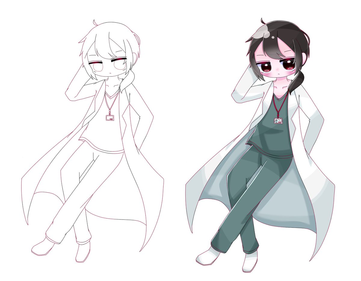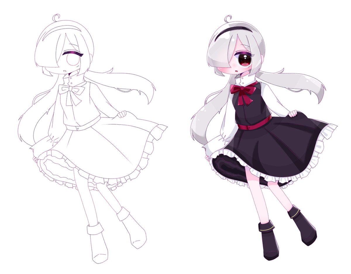 #皆さん線画と塗った後を見せてください かなり線画に色がついてる