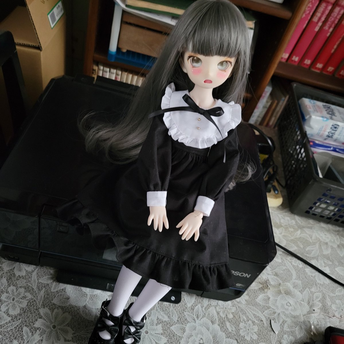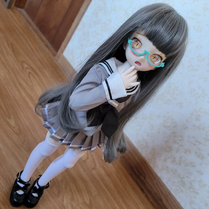 MDDちゃんのウィッグ届いたのでようやくお披露目できる!!!! 困り眉が可愛い灰色少女の、うりちゃんです( ・᷄֊・᷅ )このサイズの子は初めてだー!! #ドールオーナーさんと繋がりたい #MDDはいいぞ #香鈴堂