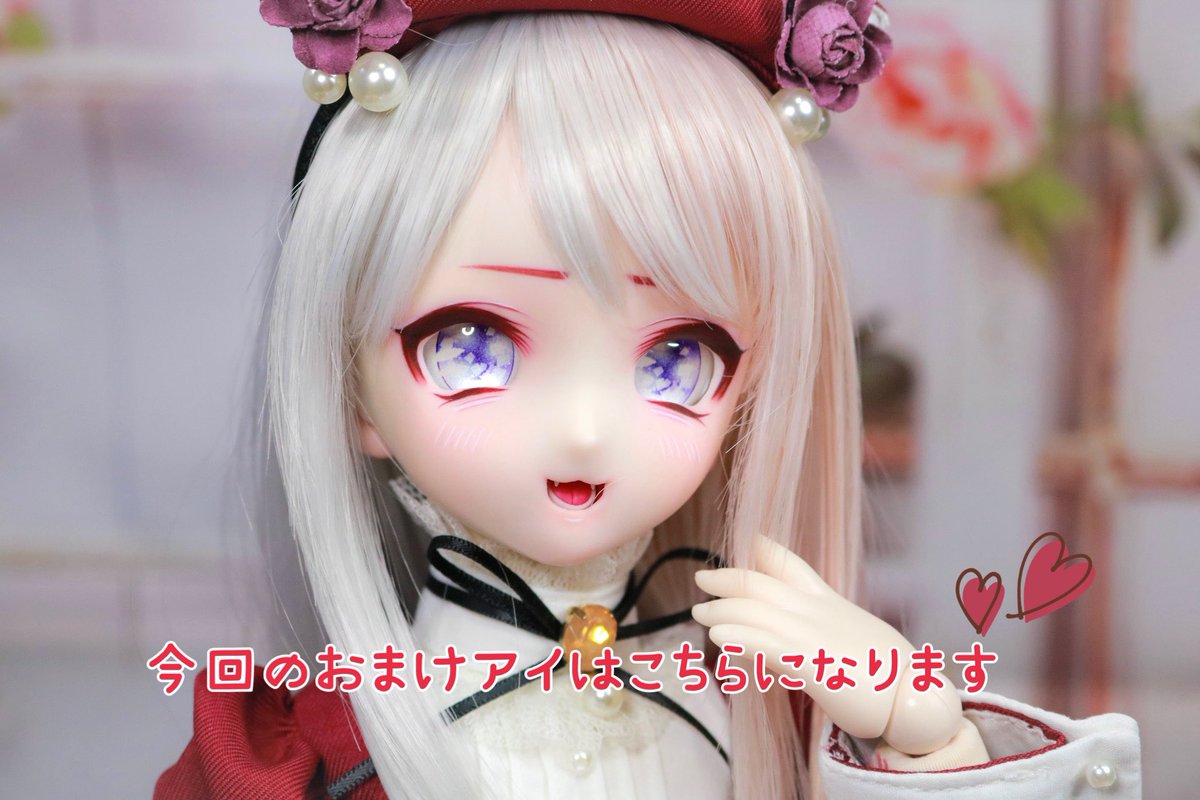 2/8(水)の夜からおうち探しスタートの10番ちゃんお披露目です(՞˶・֊・˶՞)💕 赤い瞳と牙ですので、なんだか色々吸ってそう??🦇🩸🌹 #ぴたんっ子 #dollfiedream #MDDはいいぞ