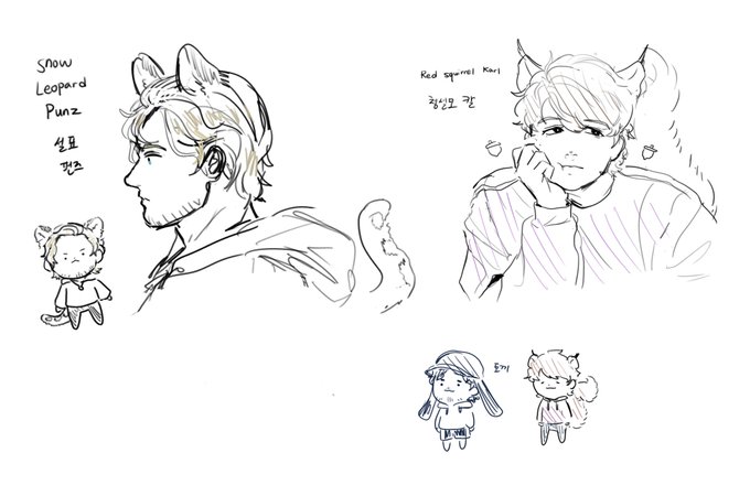 #punzfanart #karlfanart #sapnapfanart 어울린다 싶은 동물들 snow leopard punz red squirrel karl (and rabbit sapnap)
