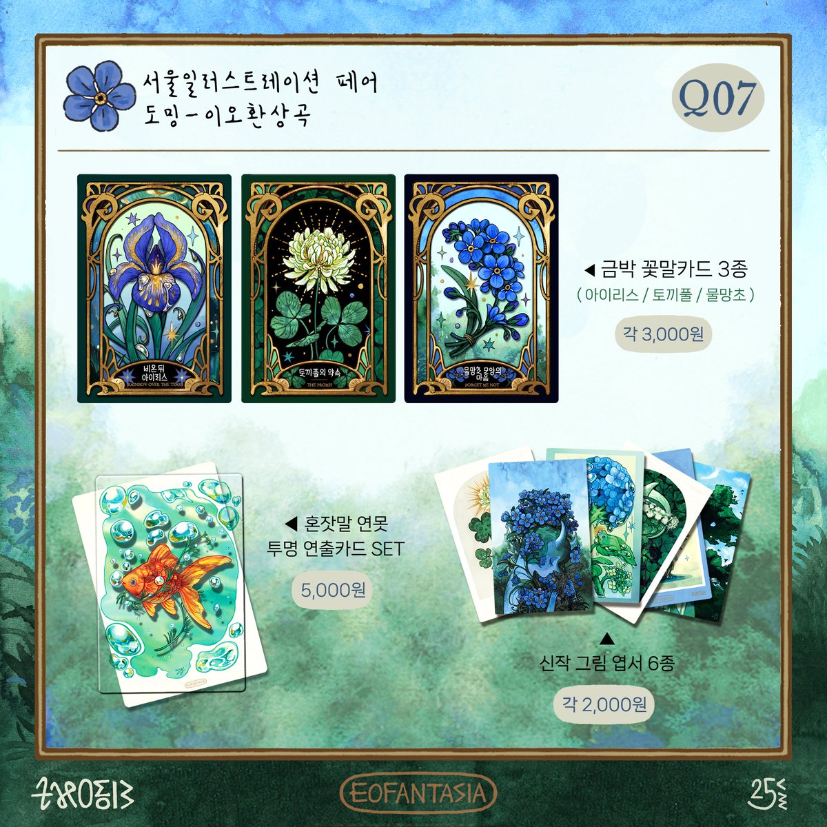 📢서일페 v.15 부스 안내 도밍-이오환상곡 부스는 Q07 번입니다. 입구에서 멀지 않은 코너부스에요. 새롭게 도전하는 종류의 굿즈들과 요정을 소환하는 도장 이벤트도 준비되어있습니다. 토끼풀과 물망초, 수국과 상록수가 흐드러진 여름의 연못가에서 뵙겠습니다😊💙🍀 - 서울일러스트레이션… twitter.com/i/web/status/1…