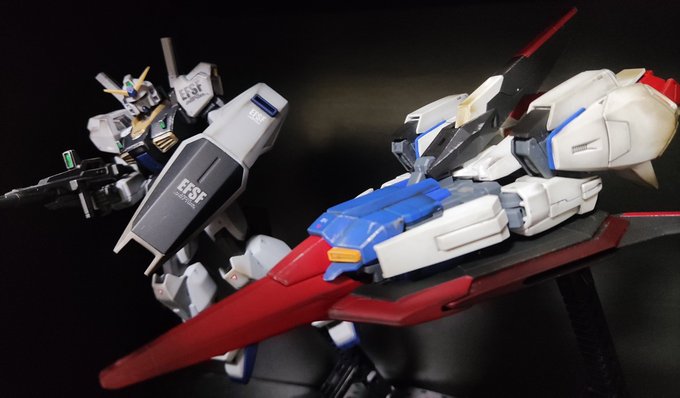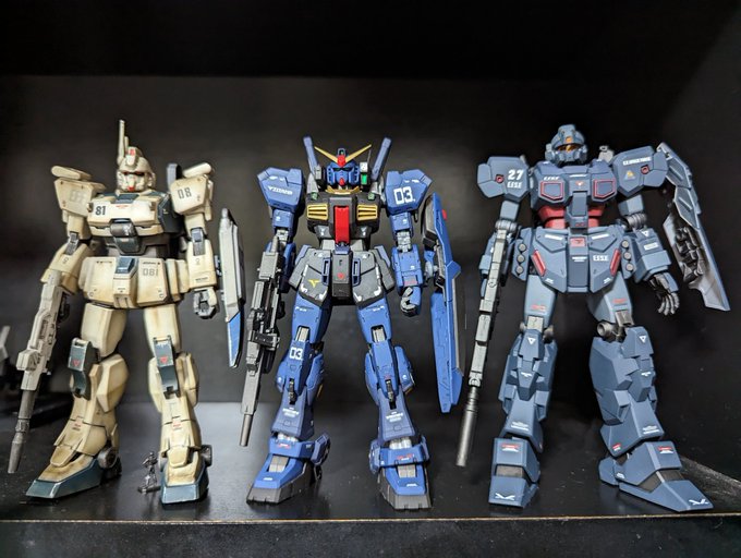 今月ロールアウトした3機。Ez8ウェザリングがっつり。MK.IIとジェスタは一部オリジナルの部分塗装です。 #今月作ったプラモ晒そうぜ #ガンプラの画像貼るとRTされると聞いて #ガンプラ初心者