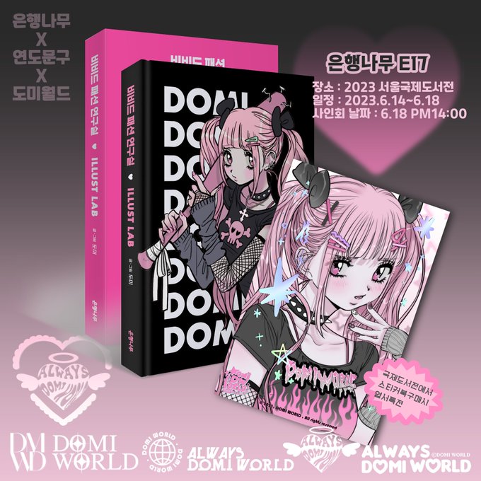 2023서울 국제도서전행사에서 사인회가 있습니다!스티커북구매하시면 특전엽서도 드린다고합니다🩷많은 관심부탁드립니다!!🖤 [ILLUST LAB] 《비비드 패션 연구실》도미 작가 사인회 🪧장소: 2023서울국제도서전 은행나무 부스(E17) ⏱️시간: 6/18(일) 14:00~15:00 ⏳행사 진행: - 당일 선착순 60명… twitter.com/i/web/status/1…