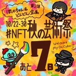 🍠❤️🔥#NFT秋の芸術祭 開幕🍠❤️🔥 誰でも参加okのゆるイベント!ついに! 【本日12時00分〜】 オープンニングスペースあり! 同時にオンサイバー会場もOPEN! 💫フィジカル展募集始まってます 詳しくは ▷ @new_c_staa 秋もお腹いっぱい楽しもう〜😆🍠✨ 👇最新版の開催概要は引用元✅ twitter.com/pokkachan_jp/s…