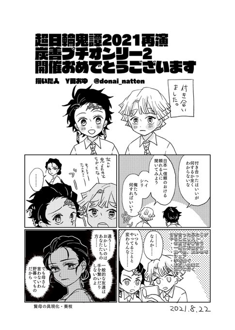 早漏だからもう無配あげちゃお!笑 本日はありがとうございました😊一応新刊の後日譚のようなものですけど「あ〜こいつら付き合ったんだな〜」と思ってください 炭善
