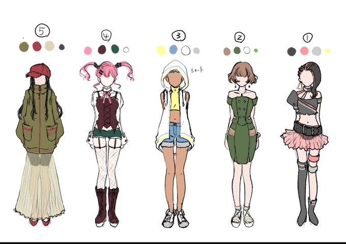 フォロワーさんに素体をお借りして、洋服のデザインやってみました(^^♪ 楽しすぎる~時間が溶ける~ もし良ければ、どれが好きかリプで教えていただければ嬉しいです(*´▽`*) #デザイン #絵師さんとつながりたい
