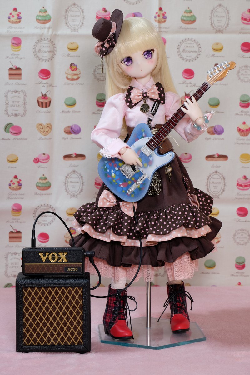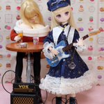 #今夜のドール撮影120分一本勝負 3/11のお題【のる】(過去) ノリノリでギターを弾くシャロちゃん。 その場のノリでコップ酒でボトルネック奏法!? #うちのこかわいい #ももマン