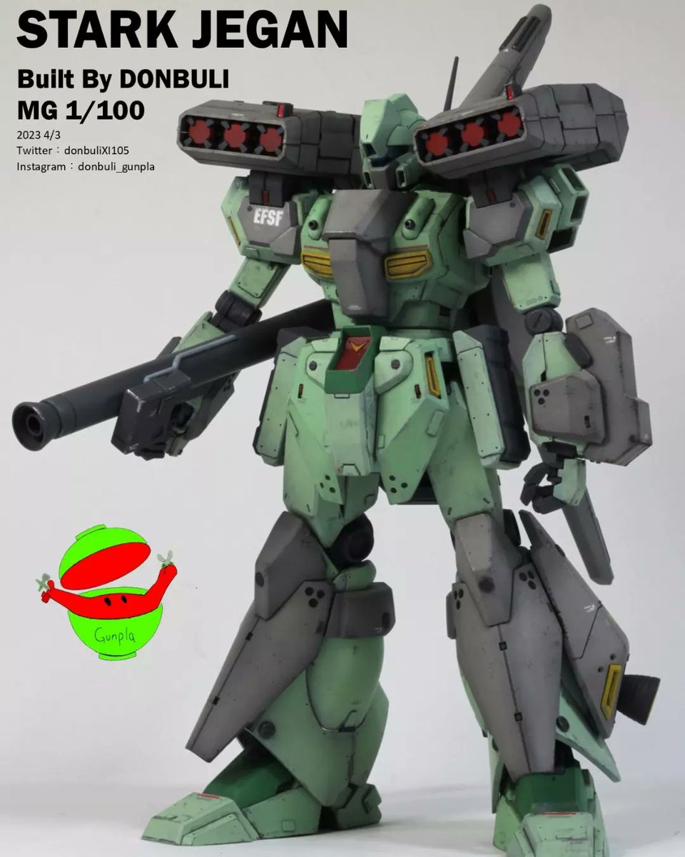 MGスタークジェガン 完成です! ドリルを使ったリベットモールドや、プラ板や市販のパーツの貼り付けによるディテールアップをしました 設定より明るめの色にアレンジ 宇宙空間を意識した汚しを入れて完成です ↓リプに追加画像↓ #ガンプラの画像貼るとRTされると聞いて #ガンプラ #ガンダム