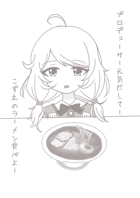 シンデレラーメン追いにいったらもう売り切れてた悲しみを癒すために描きました こずえのラーメンおいしいね… こずえのステッカー入っててほしかったね…