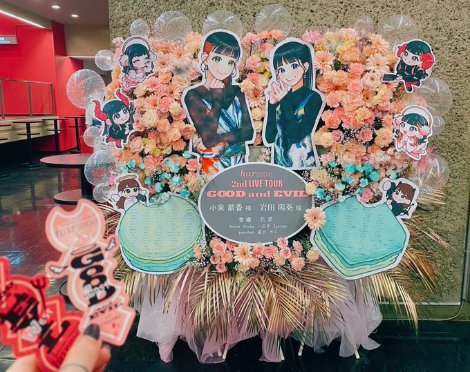 #harmoe 2nd LIVE TOUR 👼GOOD and EVIL😈 EAST公演 岩田陽葵様、小泉萌香様、 𝒉𝒂𝒓𝕞𝕠𝕖 dancers様宛にお贈りした御祝花の イラストを担当させていただきました!💐 企画者様、花屋様、そして参加して下さった皆様 ありがとうございました✨ #ハルモエライブ2 twitter.com/donchan309/sta…