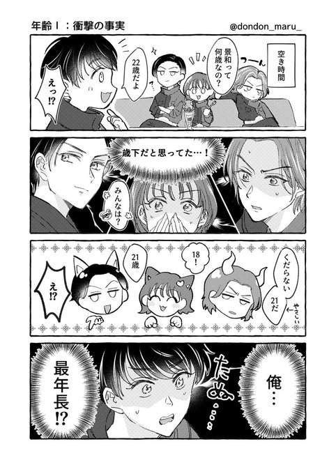 426 1885 ギツの年齢設定意外だったなというまんが🦊🦝🐱🐃+ツム ⚠️謎デフォルメ 22/10/16 08:13
